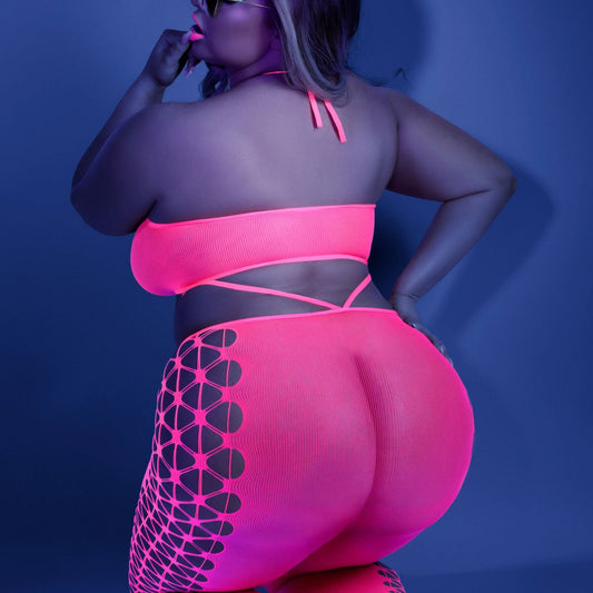 Ouch! Glow in the Dark Thigh Strap-On Harness With 5 in. Silicone Dildo Neon Green