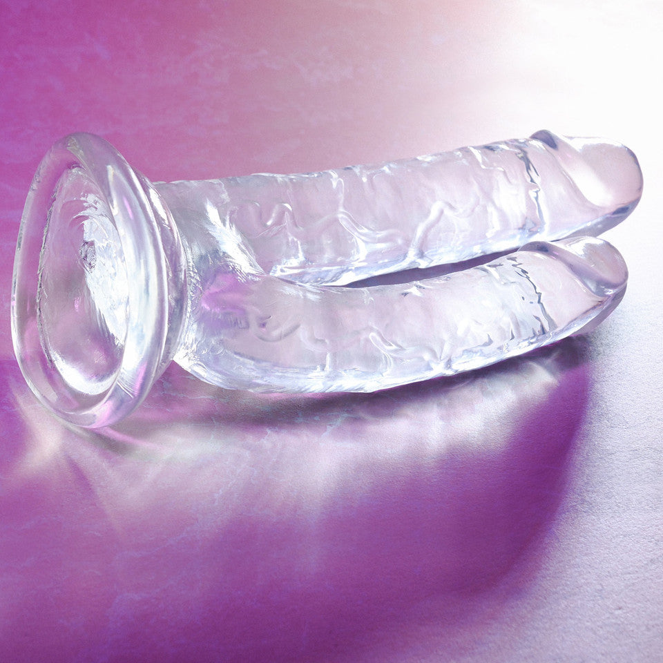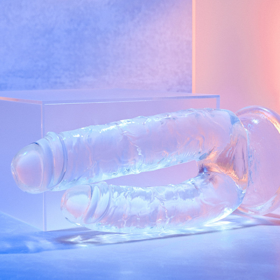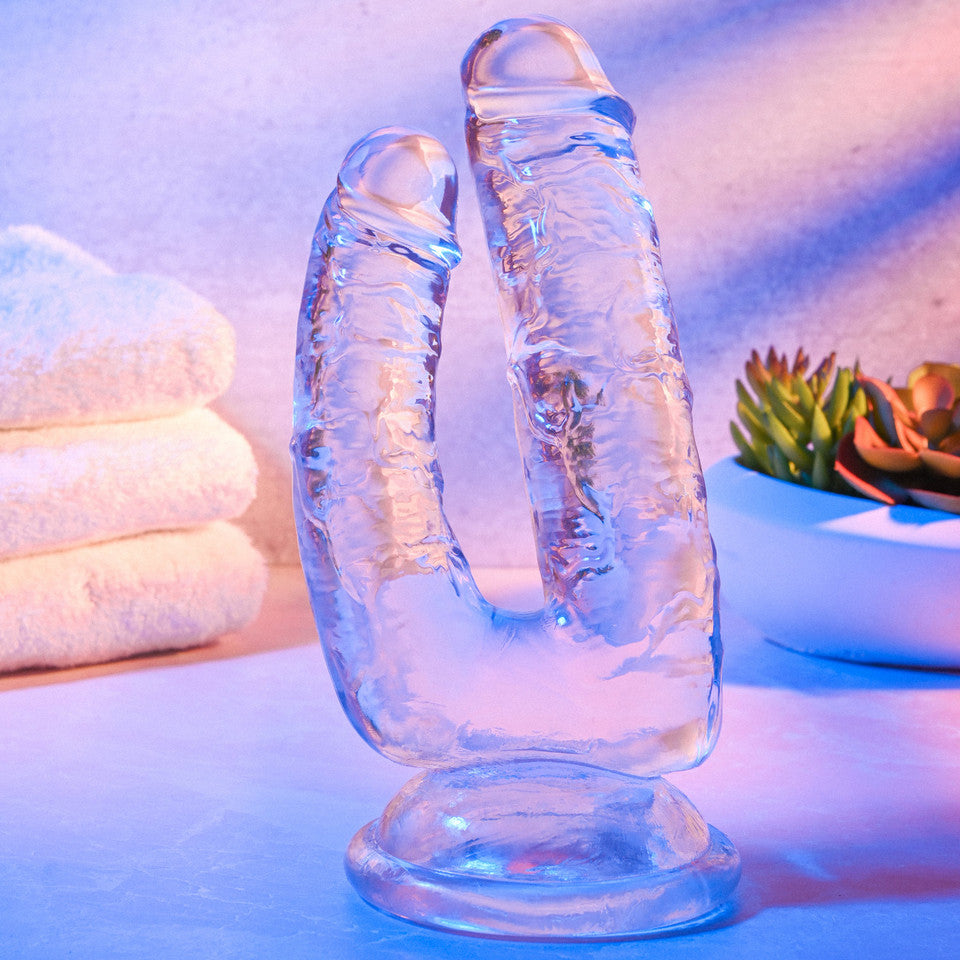 Este consolador transparente de doble eje presenta dos tamaños únicos que se flexionan y doblan para crear múltiples posibilidades. El eje vertical y más ancho es perfecto para una satisfacción profunda, mientras que la opción curva más delgada funciona para lugares más difíciles de alcanzar, ¡o lo que su imaginación tenga en mente! Use uno a la vez o ambos, con un compañero o sin él, ¡lo que se sienta bien para su máximo placer! La potente base con ventosa se adhiere a cualquier superficie limpia y seca para un juego erótico con manos libres.