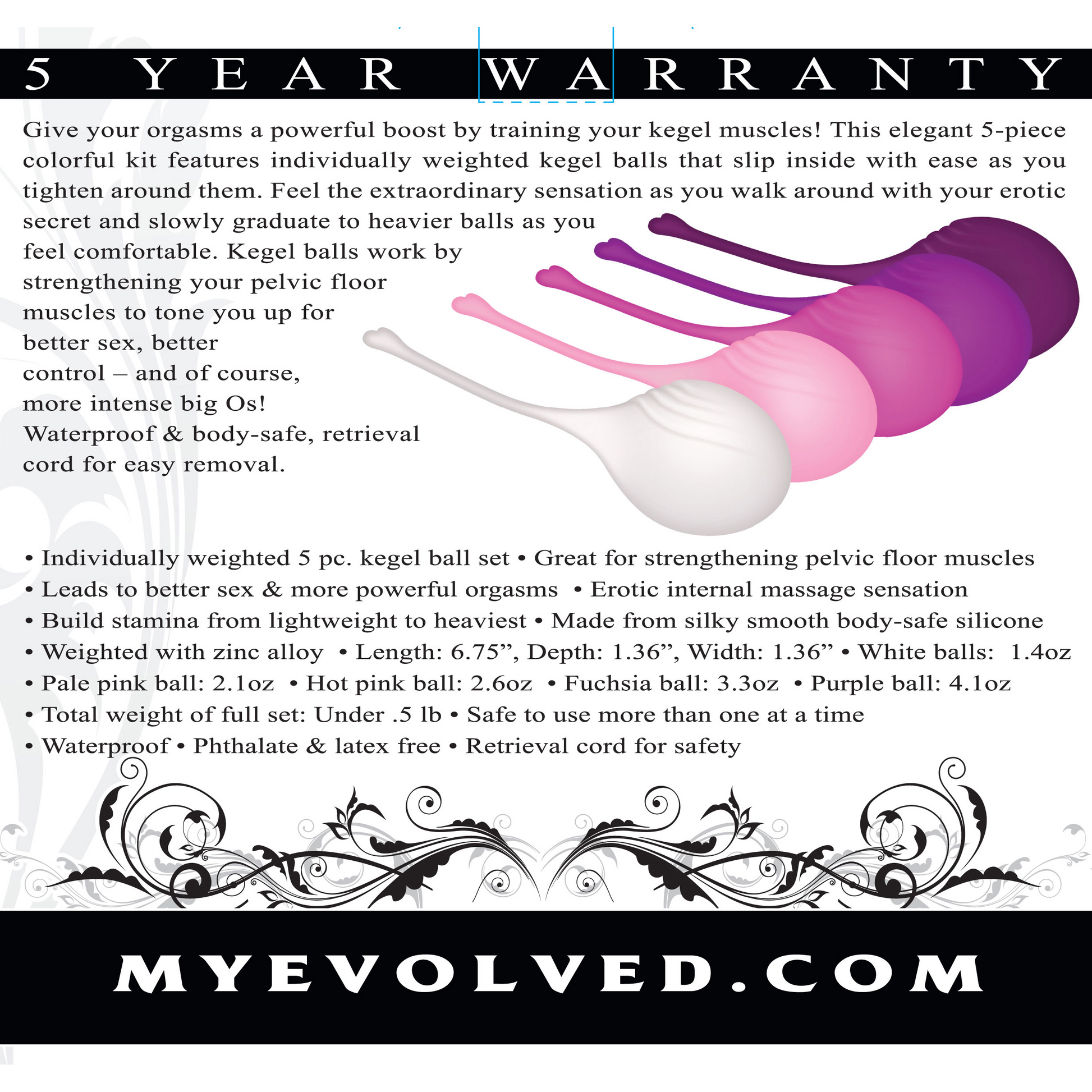 • Individually weighted 5 pc. kegel ball set