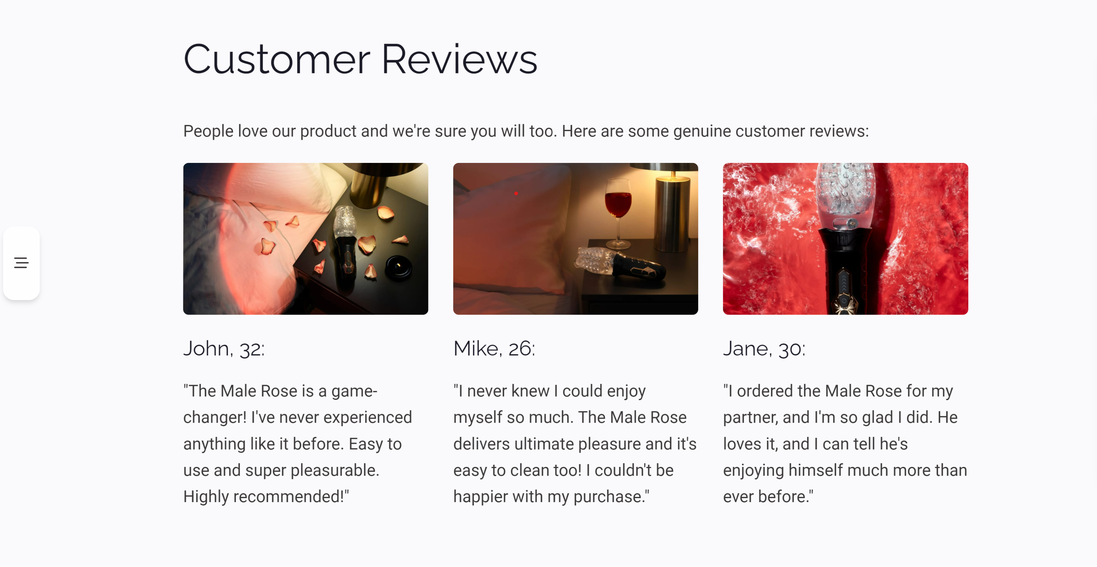 We understand that discretion is important. And that is why the Male Rose will be delivered in a very discreet white or brown package with no description of what’s inside, so don’t worry that anyone will find out.