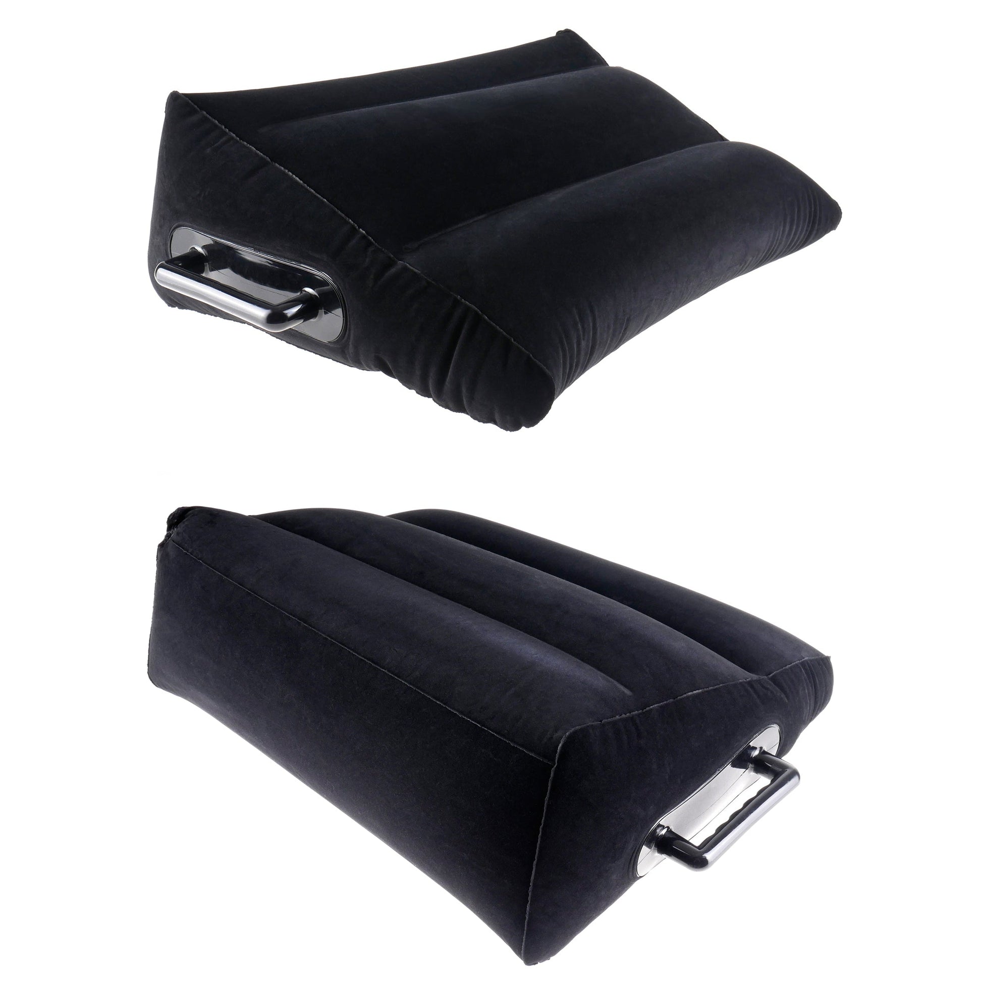 Indulge in your wildest fantasies with this Inflatable Position Master. The slanted, flocked design allows you to relax in any position without sliding off, while the EZ-Grip love handles are perfect for maintaining difficult positions without losing your rhythm. The air seal valve makes inflating the wedge a snap, and when the fun is over, simply deflate the Position Master and it's ready to go where you go. It's perfect for those romantic getaways and no one will know whats in your bag! Do it all with greater ease... no matter what position you're in! And lubricant doesn't even show up on the surface making it easy to clean too!