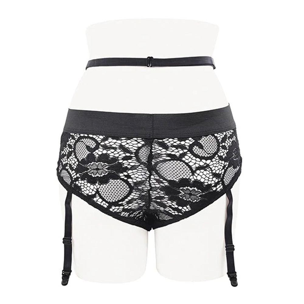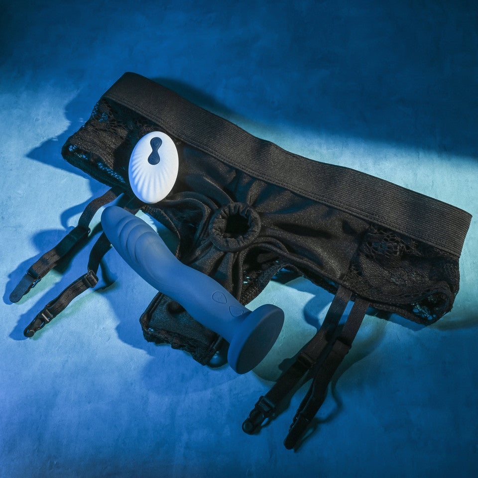 Strap in for dual-motor playtime! This wavy-shaft vibe is large and in charge, putting you in the driver’s seat of a big silicone shaft with delicious textures and two 10-speed motors – one at the tip and one at the base. The vibe slips inside the pocket of comfy lacy booty shorts for a secure fit, allowing you to focus on fun! Use the remote control for hands free or partner play and take your strap-on experience into the bath or shower as this toy is completely water submersible. Rechargeable, easy to clean and latex free!
